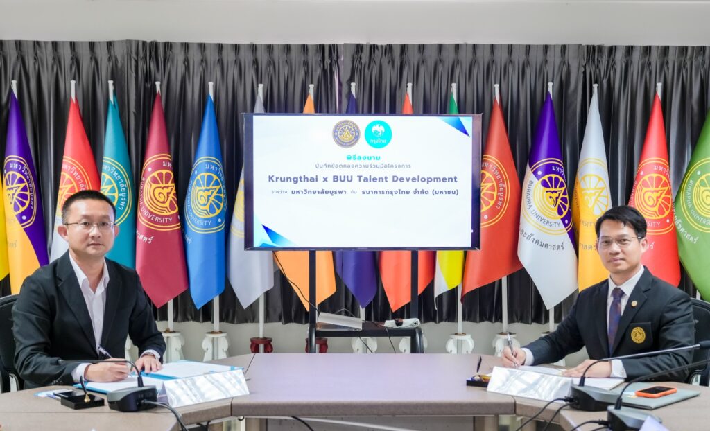 ธนาคารกรุงไทย และ มหาวิทยาลัยบูรพา ลงนามบันทึกข้อตกลงความร่วมมือ (MOU) โครงการ “Krungthai x BUU Talent Development” เชื่อมโยงการเรียนรู้สู่ประสบการณ์ทำงานจริง พัฒนาศักยภาพนิสิต บุคลากร เตรียมความพร้อมสู่ตลาดแรงงาน และยกระดับคุณภาพชีวิต ภายใต้แนวคิด “ก้าวสู่การเรียนรู้ เพื่ออนาคตที่ยั่งยืน” โดยมี นายกมล ธนนิธาพร ผู้ช่วยกรรมการผู้จัดการใหญ่ ธนาคารกรุงไทย และ ผู้ช่วยศาสตราจารย์ ดร.ปริญญา นาคปฐม รองอธิการบดีฝ่ายพัฒนานิสิตและศิษย์เก่าสัมพันธ์ มหาวิทยาลัยบูรพา ร่วมลงนาม ณ อาคารศูนย์กิจกรรมนิสิต มหาวิทยาลัยบูรพา เมื่อเร็วๆนี้