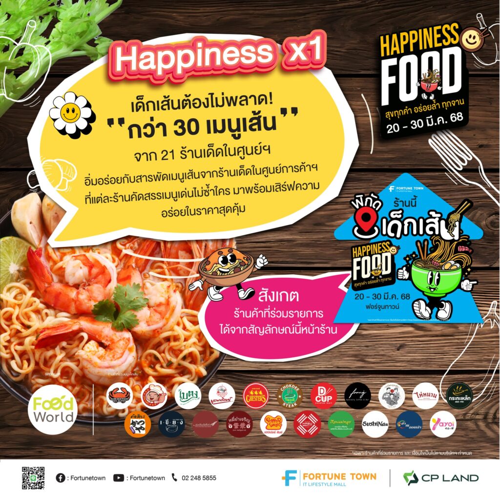 · Happiness X 1: อิ่มอร่อยกับเมนูเส้นหลากหลายสไตล์จากร้านดังในฟอร์จูนทาวน์ ในราคาสุดพิเศษ