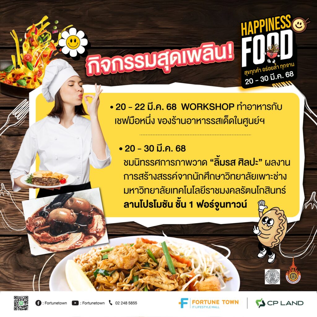 สายกินต้องไม่พลาด กับ ““Happiness Food” สุขทุกคำอร่อยล้ำทุกจาน ตั้งแต่วันที่ 20-30 มีนาคม 2568 ฟอร์จูนทาวน์ รัชดา-พระราม 9 เดินทางสะดวกด้วยรถไฟฟ้า MRT สถานีพระราม 9 ทางออกประตู 1