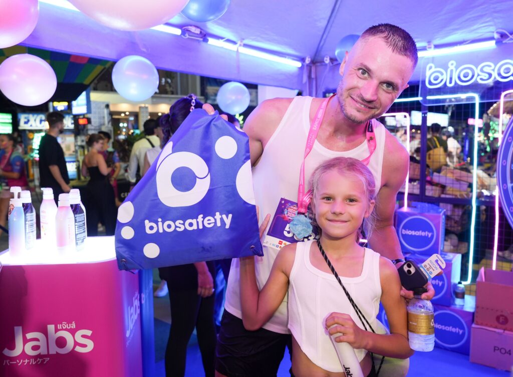 และความปลอดภัย ตอกย้ำบทบาทของไบโอเซฟตี้ในการส่งเสริมไลฟ์สไตล์ที่ใส่ใจสุขภาพในทุกมิติ โดยภายในบูธมีการจัดแสดงแปรงสีฟันรุ่น “Neon” ขนาดใหญ่ ซึ่งออกแบบมาเพื่อตอบโจทย์ผู้ใส่ใจสุขภาพช่องปากยุคใหม่ ด้วยขนแปรงปลายเรียวพิเศษ (Tapered Bristles) ที่ช่วยทำความสะอาดล้ำลึกถึงร่องเหงือก พร้อมเทคโนโลยีแอนตี้แบคทีเรียลดการสะสมของเชื้อโรคบนขนแปรง และด้ามจับดีไซน์กระชับมือเพื่อการควบคุมที่แม่นยำยิ่งขึ้น นอกจากนี้ แปรงสีฟันไบโอเซฟตี้ รุ่น “Neon” ยังสะท้อนความสอดคล้องกับธีมงานวิ่งกลางคืนเรืองแสงครั้งนี้ได้อย่างลงตัว เสริมสร้างความจดจำในแบรนด์และเชื่อมโยงภาพลักษณ์ของผลิตภัณฑ์เข้ากับประสบการณ์อีเวนต์ระดับภูมิภาคได้เป็นอย่างดี