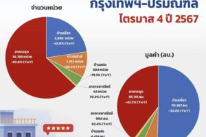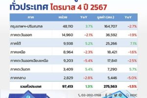 REICเผยยอดโอนฯที่อยู่อาศัยปี 67 ยังชะลอตัว ลดลง 5.2% มูลค่าลดต่ำเหลือ 9.8 แสนล้าน